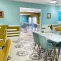 A mix of tradition tables and high-tops balances the row of display cases where weekly customers shop Kim’s desserts.