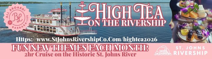 | St. Johns Rivership Co. | $45 (includes 3-hour cruise) $20 (ages 4 to 14) | Themed Teas | Dates | 433 North Palmetto Avenue, Sanford, FL 32771 | Purchase tickets here 321-320-8466 Ticket purchase required |